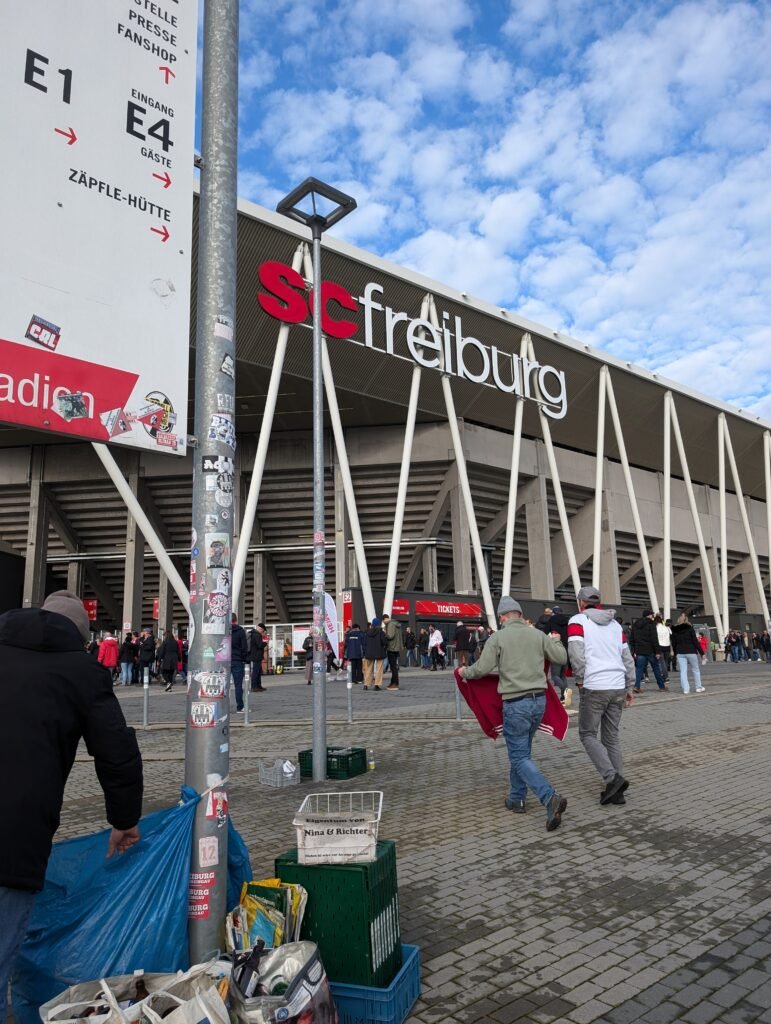 Le GästeBlock est plein à craquer, les Kiezkickers sont là, et la joute vocale et sonore débute. Juste avant de gravir les escaliers qui mènent à nos sièges, un Allemand m’offre une cinquantaine de sticks d’un groupe du SCF, ce généreux don assorti d’un « Bienvenue à Freiburg ». Décidément, pas le pire accueil expérimenté, au contraire !