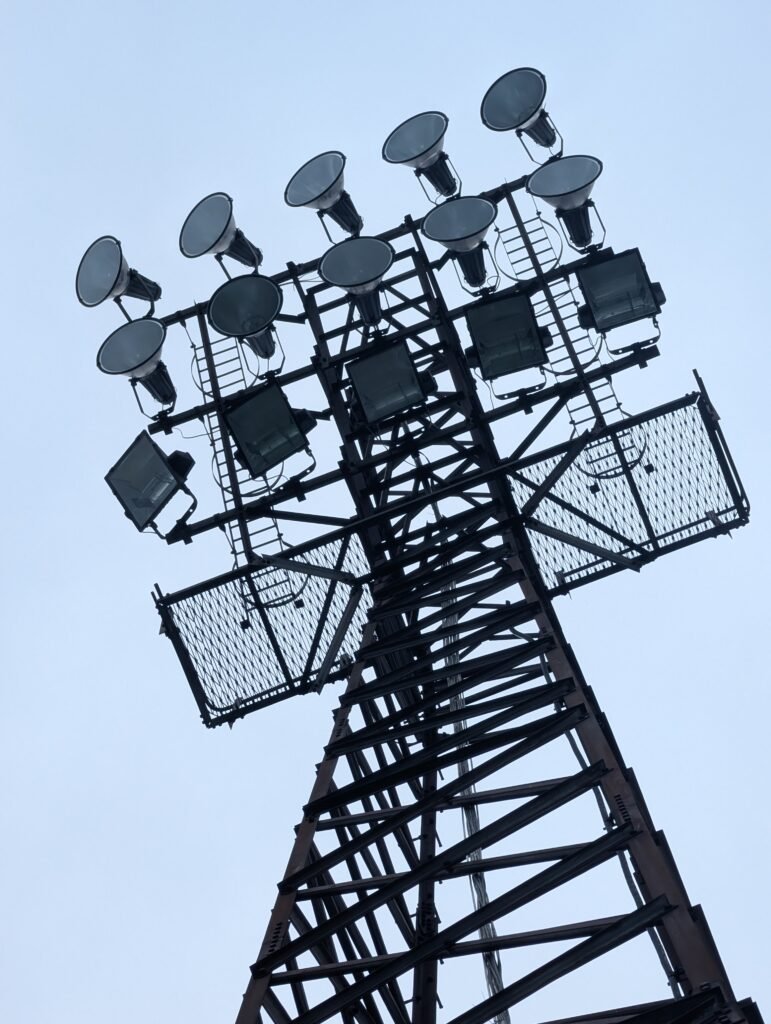 Le stade est enchevêtré entre les maisons, et ses spots lumineux d’un autre temps nous mènent vers le rectangle vert non sans encombres.