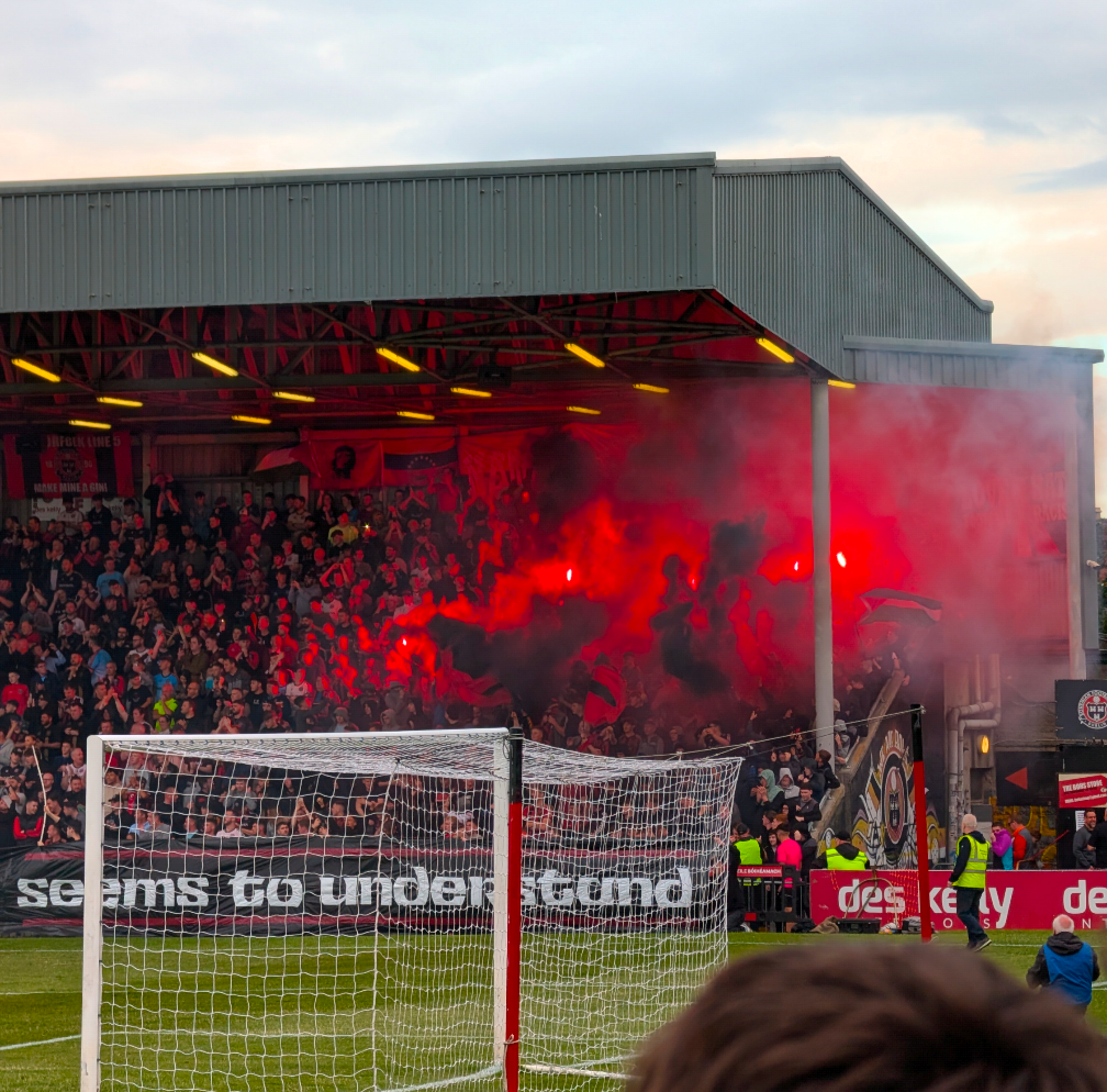Le Bohemian FC, plus authentique, plus Irlandais et plus supporté prend sa revanche en tribunes, les Notorious Boo Boys enflammant le tribune principale du Dalymount depuis 2006, ces derniers surclassent largement les ultras rivaux des Rovers.