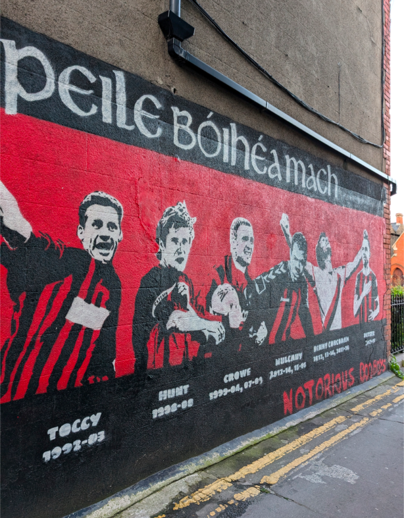 D’ailleurs, la coursive bordant la DesKelly Stand est elle aussi recouverte de fresques murales, célébrant cette fois ci le club porte-étendard du quartier.