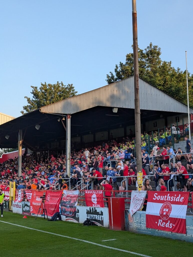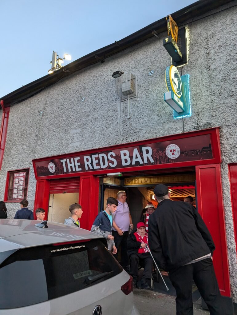 L’antre des Reds de Dublin brille de mille feux sous le coucher de Soleil de cette fin de semaine, et les ultras du groupe Riverside se pressent déjà devant les portiques plus d’une heure et demie avant le coup d’envoi.