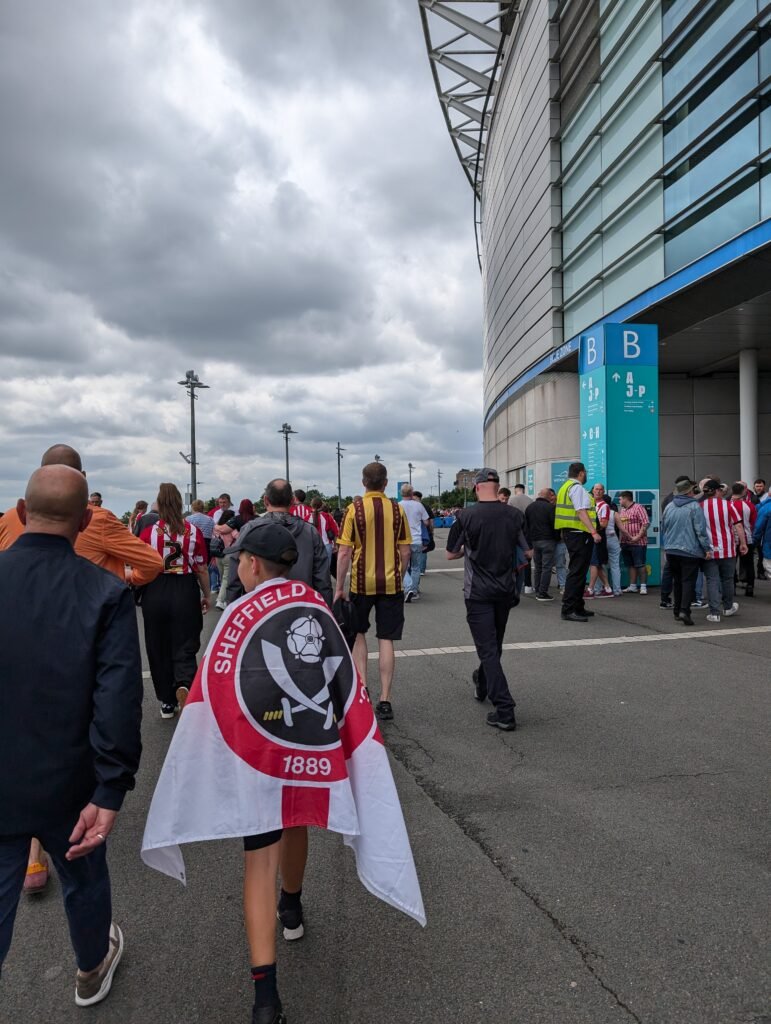 Des écharpes pour Sheffield United, des drapeaux rouges et blancs pour Sunderland.
