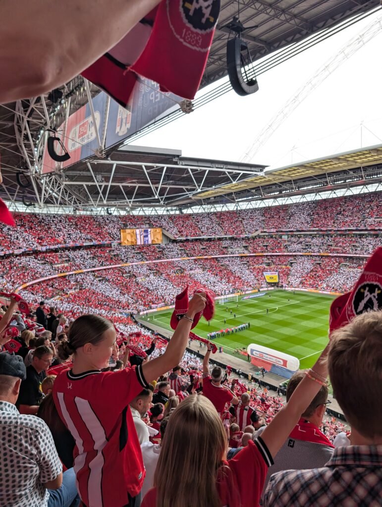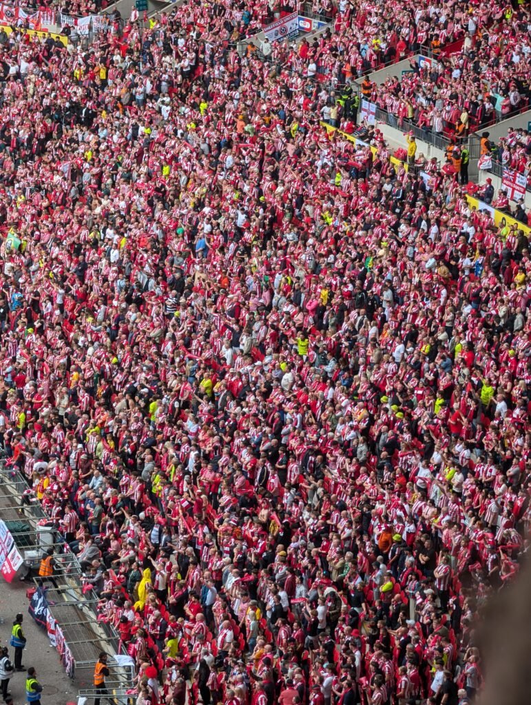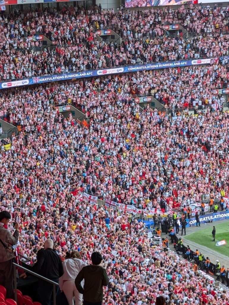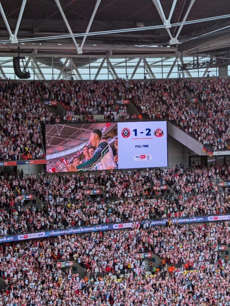 La fin du match approche, et à la dernière seconde, sur une remise complètement ratée d’un Kieffer Moore cataclysmique aujourd’hui, Tom Watson, enfant de Sunderland et supporter du club, qui a déjà fait partie des précédentes aventures à Wembley des Black Cats en tant que supporter vient inscrire le but de la libération.