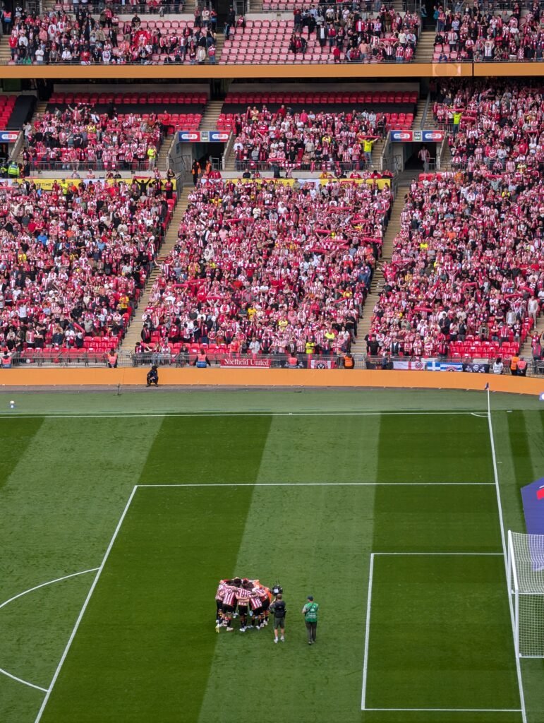 Les quelques 40 000 supporters de Sheffield United sautent, crient, hurlent plutôt, la terre tremble, les poings jaillissent des traveesyde Wembley, la joie inonde les visages des uns, tandis que ceux des fans du Sunderland sont de plus en plus perplexes.