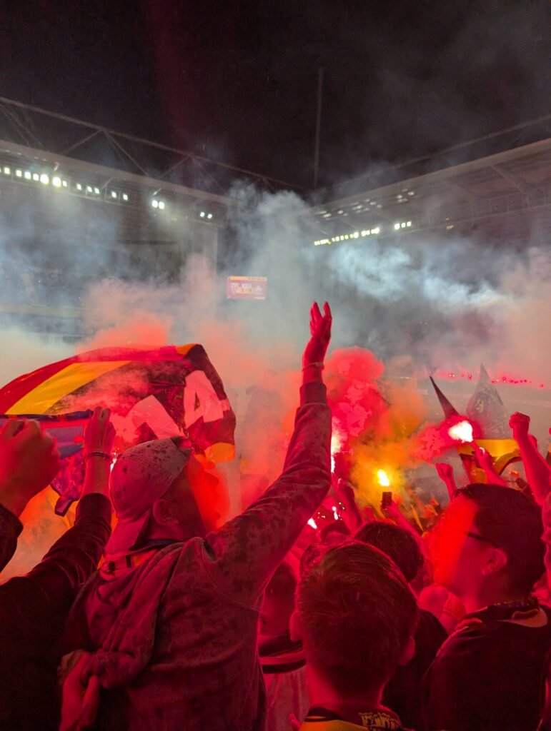 Le bonheur est total, le joie immense, la clameur grandiose, rien ni personne ne peut plus nous arrêter, les Lensois sont au sommet. La dernière demi-heure passe vite, les chants sont tous repris par le stade entier et résonnent jusqu’à Lille, les banderoles sont de sortie, et un second craquage vient illuminer la nuit noire. Les seules choses qui brillent alors, sont les yeux pleins d’étoiles des Sang et Ors, les fumigènes et la Lune.